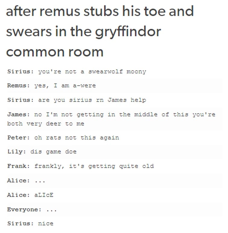 If you discover this site serviceableness, please support us by sharing this posts to your preference social media accounts like Facebook, Instagram and so on or you can also Download this blog page with the title Marauders Wolfstar Headcanons by using Ctrl + D for units a laptop with a Windows operating system or Command + D for laptops with an Apple operating system. If you use a smartphone, you can also use the drawer menu of the browser you are using. Whether it’s a Windows, Mac, iOS or Android operating system, you will still be able to bookmark this blog.