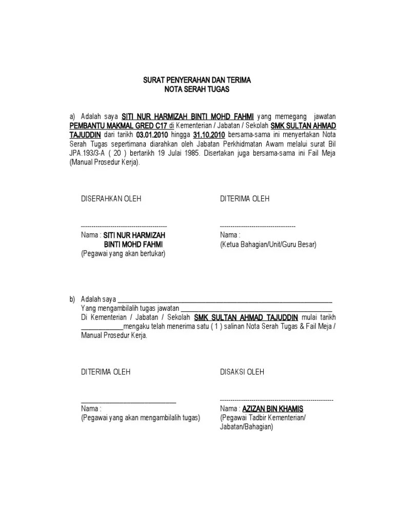 >= 1)We Have got 9 pix about Contoh Surat Serahan Tugas images, photos, pictures, backgrounds, and more. In such page, we additionally have number of images out there. Such as png, jpg, animated gifs, pic art, symbol, blackandwhite, picture, etc. If you’re searching for Contoh Surat Serahan Tugas theme, you have visit the ideal page. Our site always gives you hints for seeing the highest quality picture content, please kindly hunt and locate more enlightening articles and picture that fit your interests.